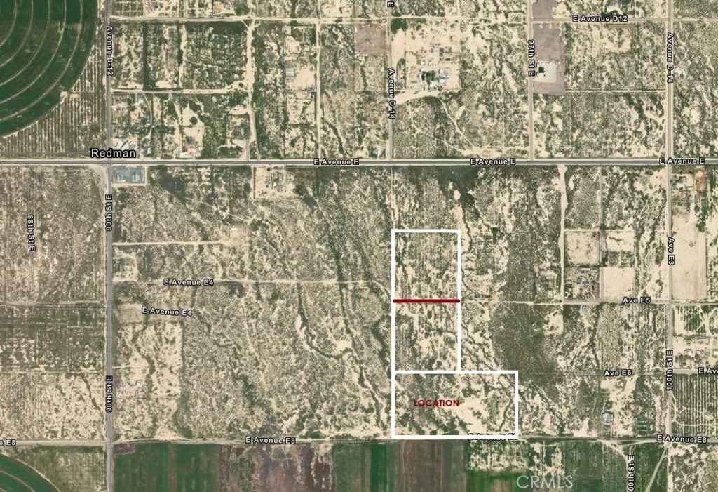 Source Listing Status: Active Source Neighborhood: LAC - Lancaster Directions: Ave E to 90th St E - South 1/2 mile to Ave E-8 - East (on a dirt road) 1/2 mile to 95th St E Zoning: LCA1-1 Source Property Type: Land Area: LAC - Lancaster