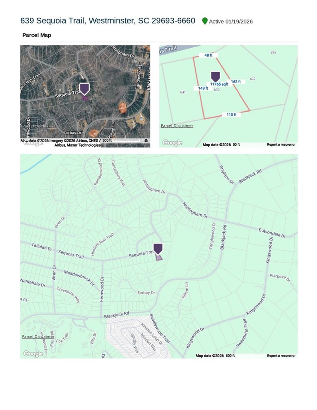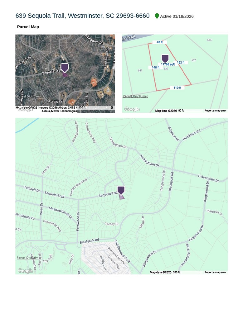 | 102 W Sheffield Drive, Westminster, SC, 29693 | $10,000 | -- | -- | -- | 0.16 Acre(Lot) |
